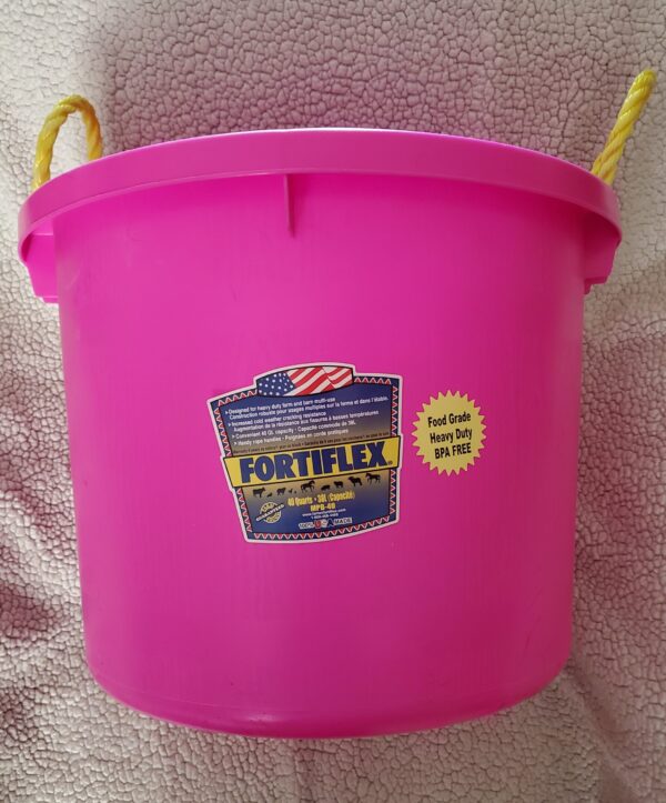 40 quart bucket made with rubber-polyethylene blend for exceptional strength and toughness.