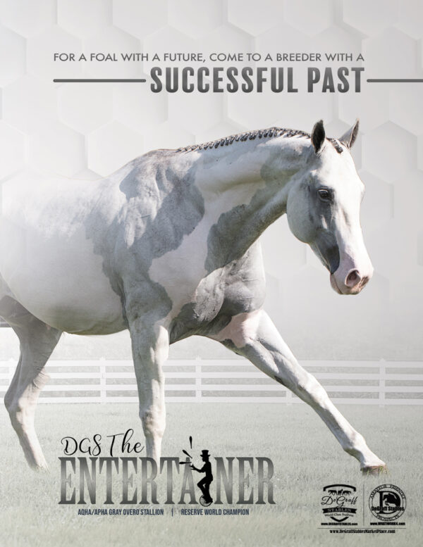 In 2019, he was 2X Top 10 in Hunter Under Saddle at the APHA World Show and NSBA World Show; 2018 Pinto Horse of the Year; 1st Place – Open Hunter Type Stallion Horse; and 2018 Pinto Reserve World Champion – Open Hunter Stallions. He also is a 4X APHA Reserve Grand Champion in Halter Stallions.