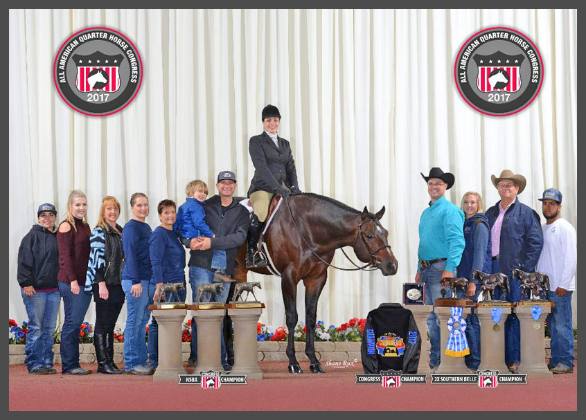 GOOD BETTER BEST AKA as MAG, is the earner of $9,385 & 10 AQHA points in Hunter Under Saddle: 2017 Congress NSBA 3-Year-Old Non-Pro Hunter Under Saddle Stakes Champion; 2017 Congress NSBA 3-Year-Old Open Hunter Under Saddle Reserve Champion; 3rd, NSBA High Point 3-Year-Old Non-Pro Hunter Under Saddle; 2017 Southern Belle/ Congress 3-Year-Old Open Hunter Under Saddle Reserve Champion.