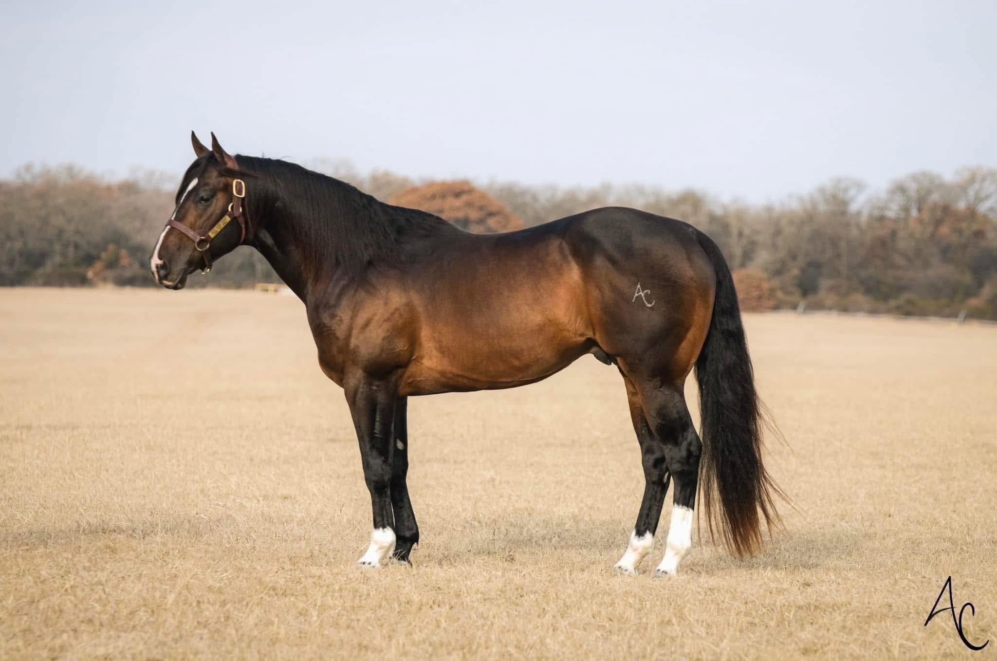 2019 Bay AQHA Stallion 16.2 h, 7 Panel N/N (Tres Seis x million dollar producer Jess Send Me)