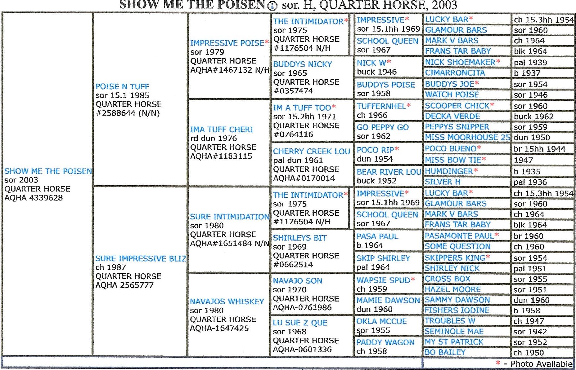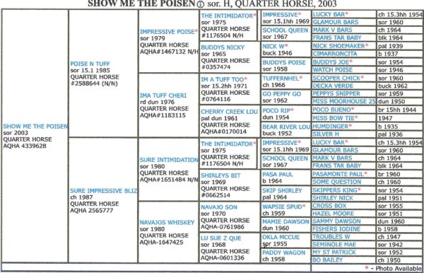 Sire: Poise N Tuff Dam: Sure Impressive, Double Bred The Intimidator Top & Bottom (AQHA & APHA Registered)