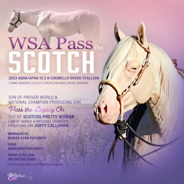 Cremello son of Pass The Legacy On Multiple WORLD & National Champion producing sire
